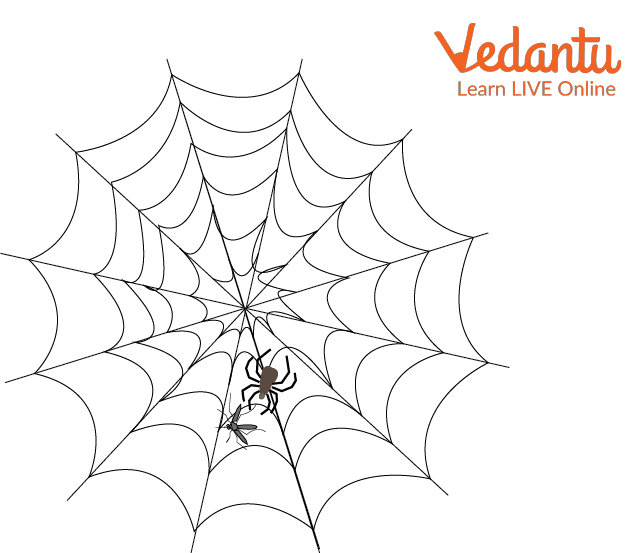 Suddenly, he felt a string attached to his wings. He saw that he was caught by a spider’s web spun between the branches.