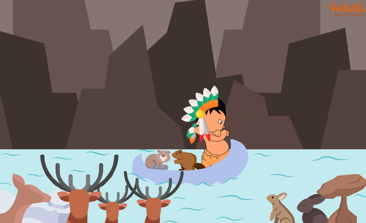 When they arrived at the shore, Hiawatha dismounted and boarded his boat. He was content since he had gained numerous friends. "Goodbye, pals. I'll see you again soon! "He made a vow as he rowed off, grinning.