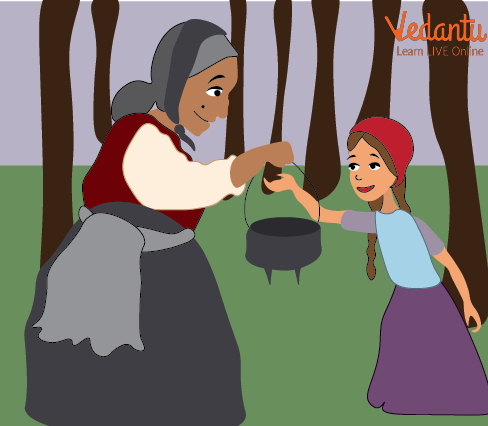 One day in the woods, an old witch gave Tara a magic pot. "The pot will prepare porridge when you say 'Cook-Pot-Cook,' and stop making them when you say 'Stop-Pot-Stop,'" the witch instructed the little girl. Tara brought the pot home.