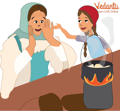 Melody and her mother consumed plenty of sweet porridge every day. The young girl kept her word every day and made the journey into the woodland to sing for the good witch. One day, while the sweet porridge was still cooking, Melody departed to meet the witch. She warned her mother not to forget the spell.