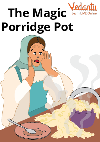 A poor child and her mother are the two primary characters in the story. A magical pot that makes porridge and stops making it when instructed to do so is given to the girl. When the mother of the girl forgets the phrases that tell the pot to stop making porridge, trouble happens.