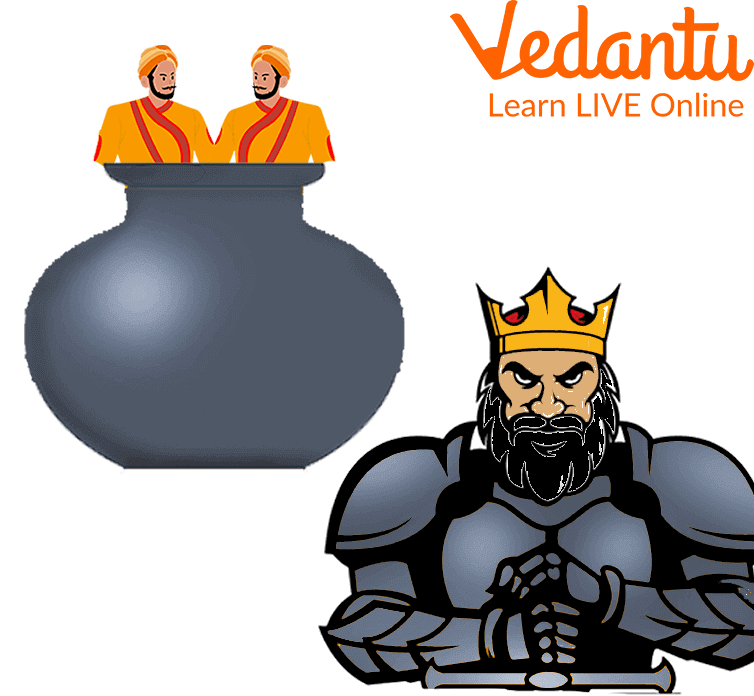 The pot was accidentally spotted in the room one day by the king's father. He started wondering about the pot. He fell into the pot while attempting to look inside. The king's father yelled, "Help me!" When the king arrived, he helped his father to get out of that large pot. He observed another man just like his father in the pot, pleading for rescue as he saved his father. The two men resembled one another absolutely. Each claimed to be the father of the king. It was impossible to differentiate between them.