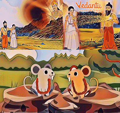The priest told his wife of this and they again prayed to the Mountain God to appear. When he came, they asked him if he would marry their daughter. However, their daughter refused to marry him and said, “Father, he is too mighty and big. I will not marry him.” The priest then asked the Mountain God, “Oh Mighty Mountain, is there anyone greater than you who can be a suitable groom for my daughter?”. The Mountain said, “The mouse digs holes in me. I think he is greater than me. Perhaps, he is the suitable groom for your daughter.”.