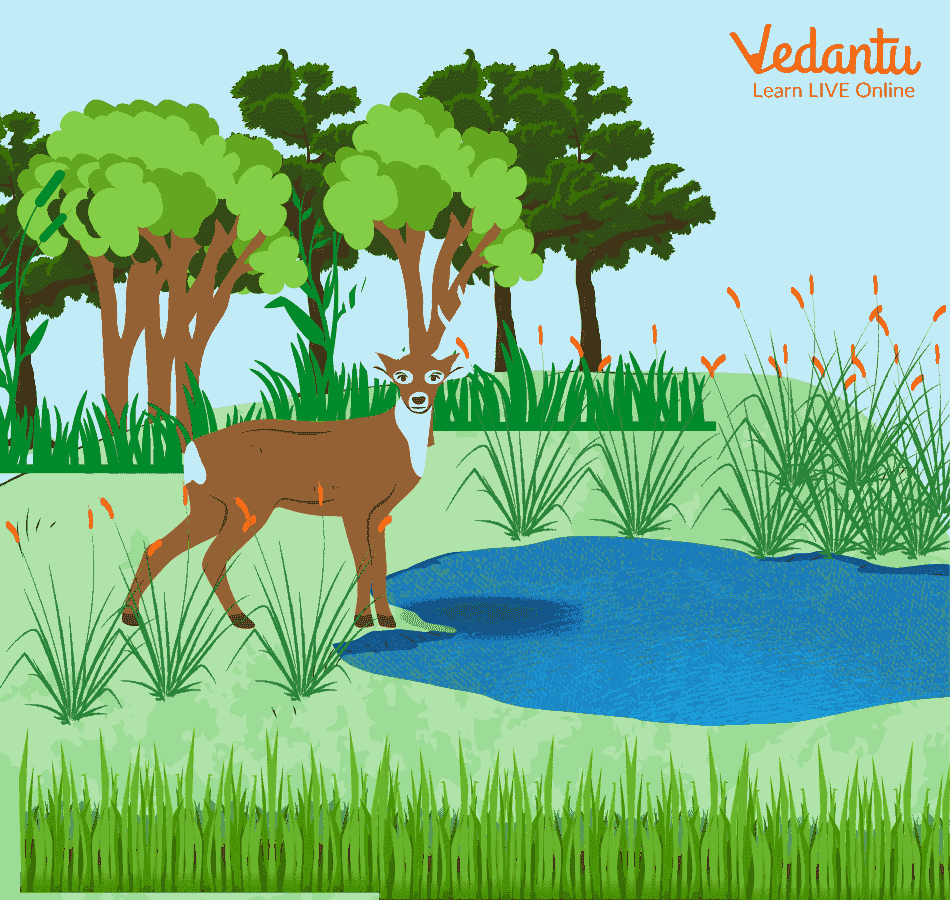 There was a beautiful forest and a clean lake in the middle. Animals used to come to this lake to quench their thirst. It was a common place where hunters also gathered to catch animals or kill them.