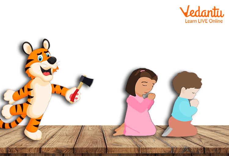 The tiger began climbing the tree with an axe. The children were almost killed by the tiger's little paw. "Oh, my God!" “If you want to save us, send down a heavy rope; if you don't want to save us, send down a bare rope," the boy said. The children prayed with their eyes closed.