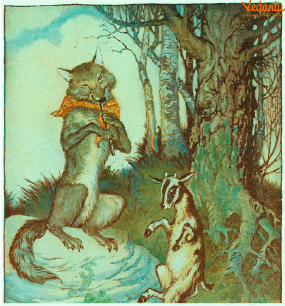 The first one is the wolf and the second one is the lamb. These are the two main characters in the story “The Wolf and the Lamb”.
