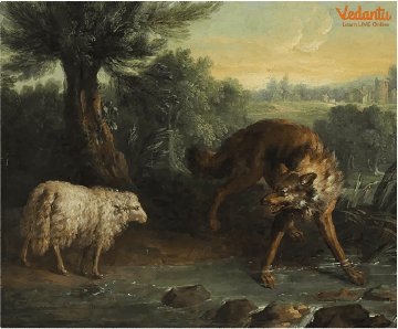 This is a story about a hungry wolf and a lamb. The clever lamb used his brain and saved his life from the wolf. In the end, the small lamb succeeds in escaping the wolf with the help of the guard dogs. The story teaches us to be brave and face our enemies or problems courageously. Through the example of the lamb, we learn how wit and cleverness help us succeed in life and escape adverse situations.