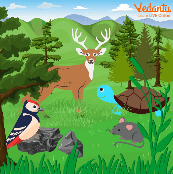 Four animals, a deer, a tortoise, a mouse and a woodpecker, lived deep in the forest. They were best of friends. They were never seen apart. They spent a lot of time by the pond, conversing or playing.