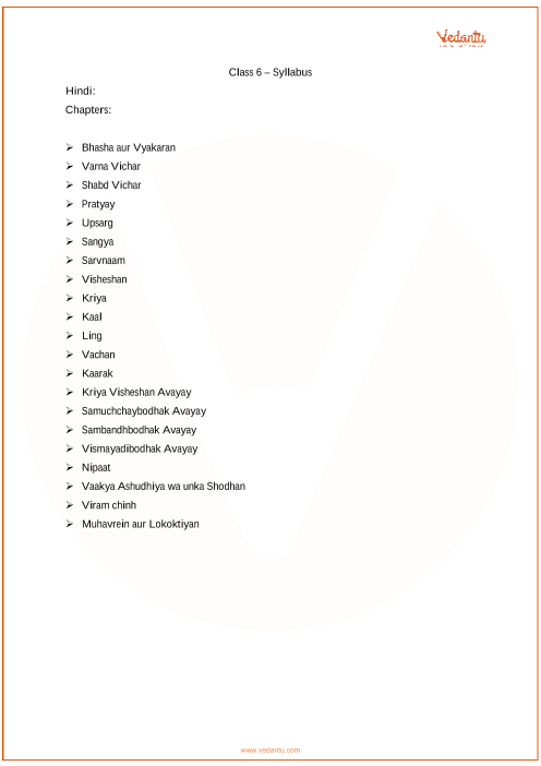 The Class 6 Hindi syllabus includes chapters from the textbook, grammar topics, writing exercises, and comprehension passages. It covers all essential language skills needed for exams.