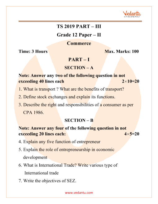 FAQs on TSBSE Class 12 Commerce Question Paper 2019