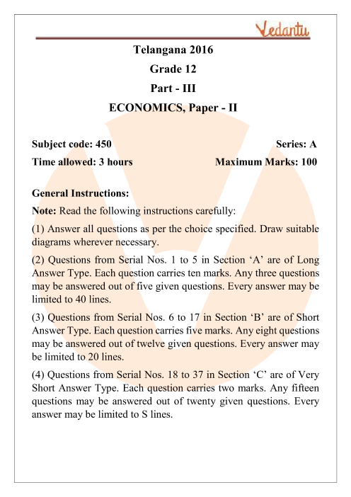 FAQs on TSBSE Class 12 Economics Question Paper 2016