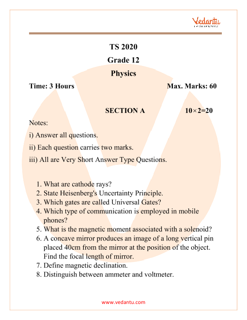 FAQs on TSBSE Class 12 Physics Question Paper 2020