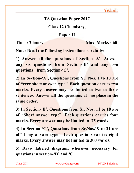 Telangana Board Chemistry Class 12 Papers 2017 with Solutions - Free PDF Download.
