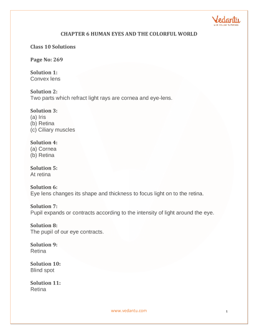 FAQs on Lakhmir Singh Physics Class 10 Solutions Chapter 6 - The Human Eyes and The Colourful World