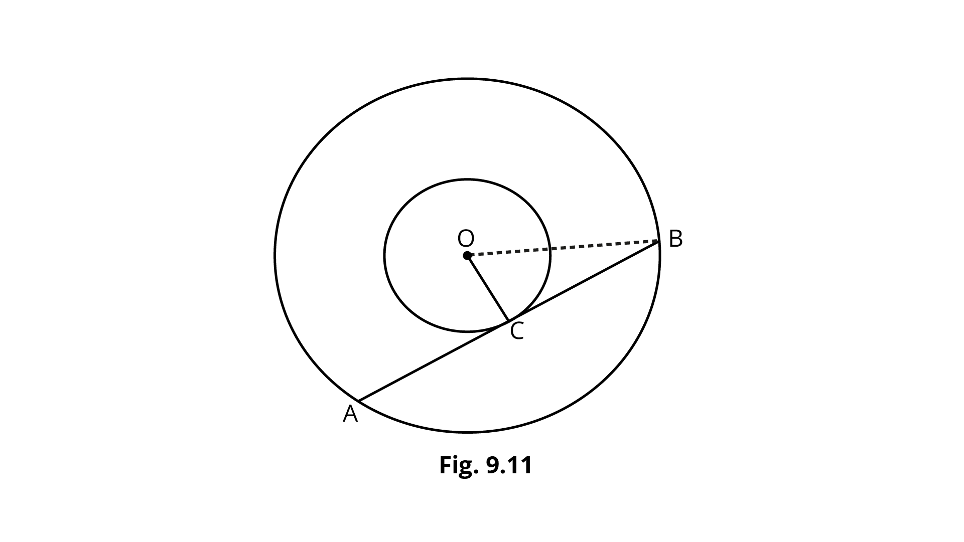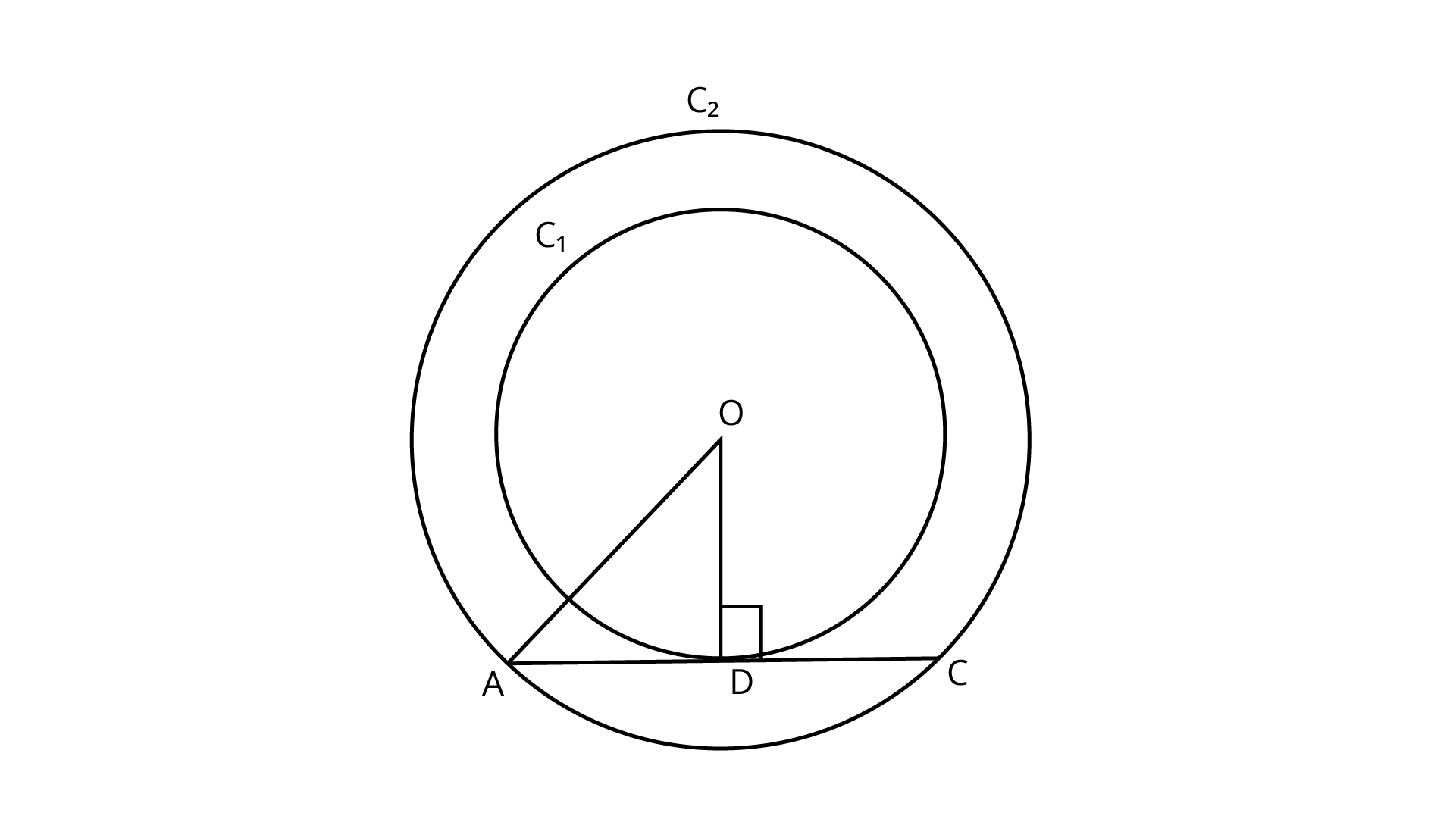 Let O be the centre of two concentric circles${C_1}$ and ${C_2}$, whose radii are ${{\text{r}}_{\text{1}}}{\text{ = 4 cm and }}{{\text{r}}_{\text{2}}}{\text{ = 5 cm}}$