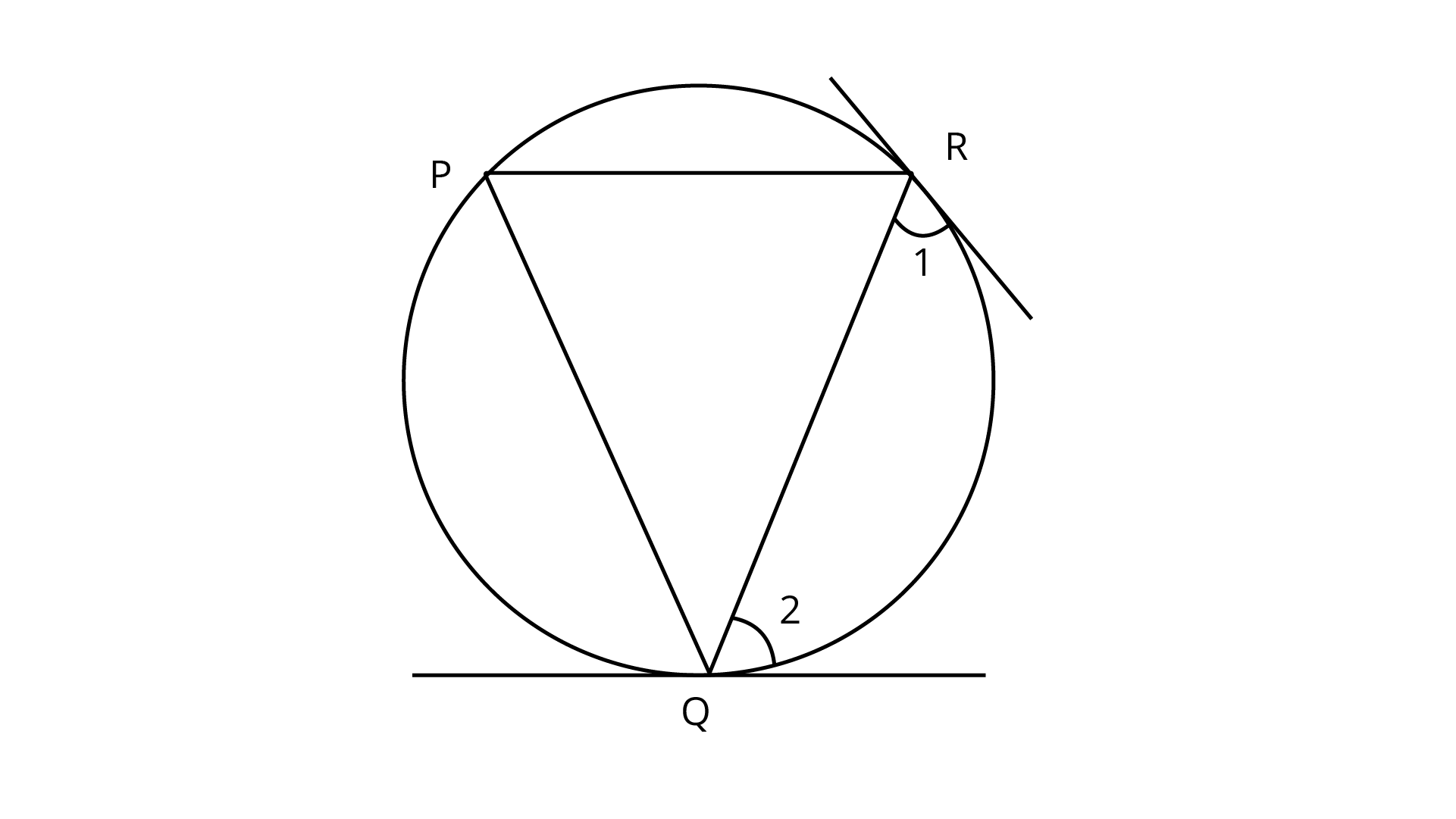 3. In Fig. 9.2, $PQ$ is a chord of a circle and $PT$is the tangent at $P$ such that $\angle QPT = 60^\circ$ Then $\angle PRQ$ is equal to