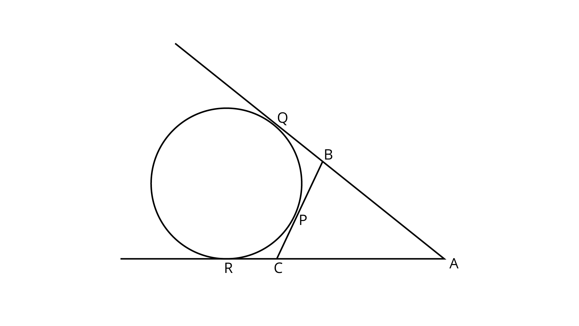 The tangents drawn from an external point are equal in length, so $BP = BR$, $QC = RC$ and $AP = AQ$.