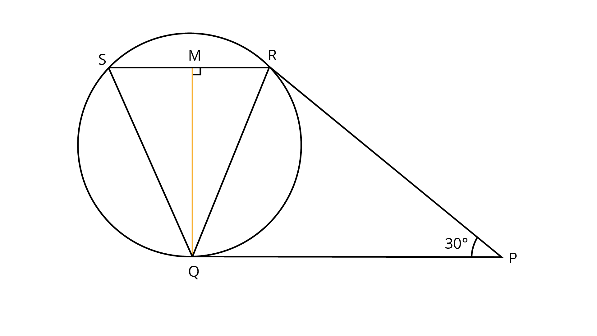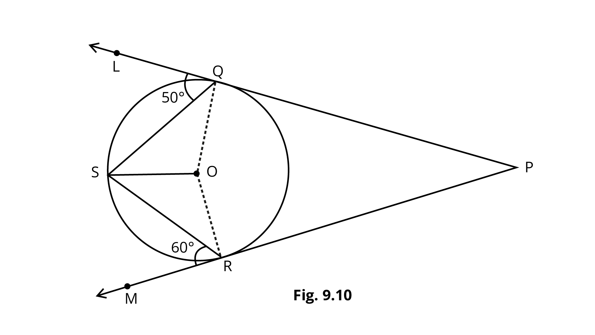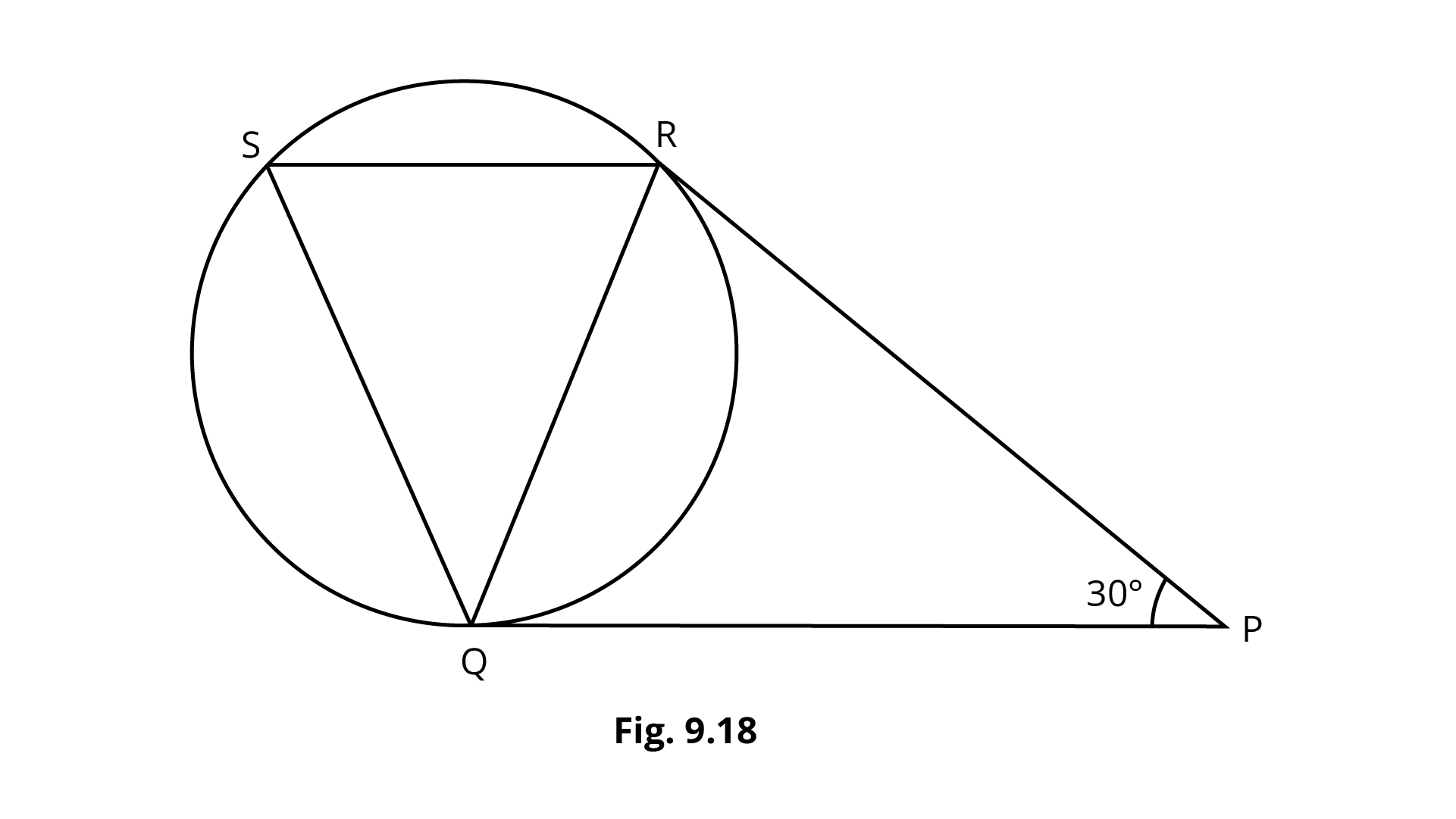 $[{\text{Hint }}:\angle {\text{OPQ }} = \angle {\text{OPQ }} = 30^\circ ,{\text{ }}i.e.,\angle {\text{POQ}} = 120^\circ .{\text{Also, }}\angle {\text{PRQ}}{\text{ = }}\dfrac{1}{2}{\text{reflex}}\angle {\text{POQ]}}$