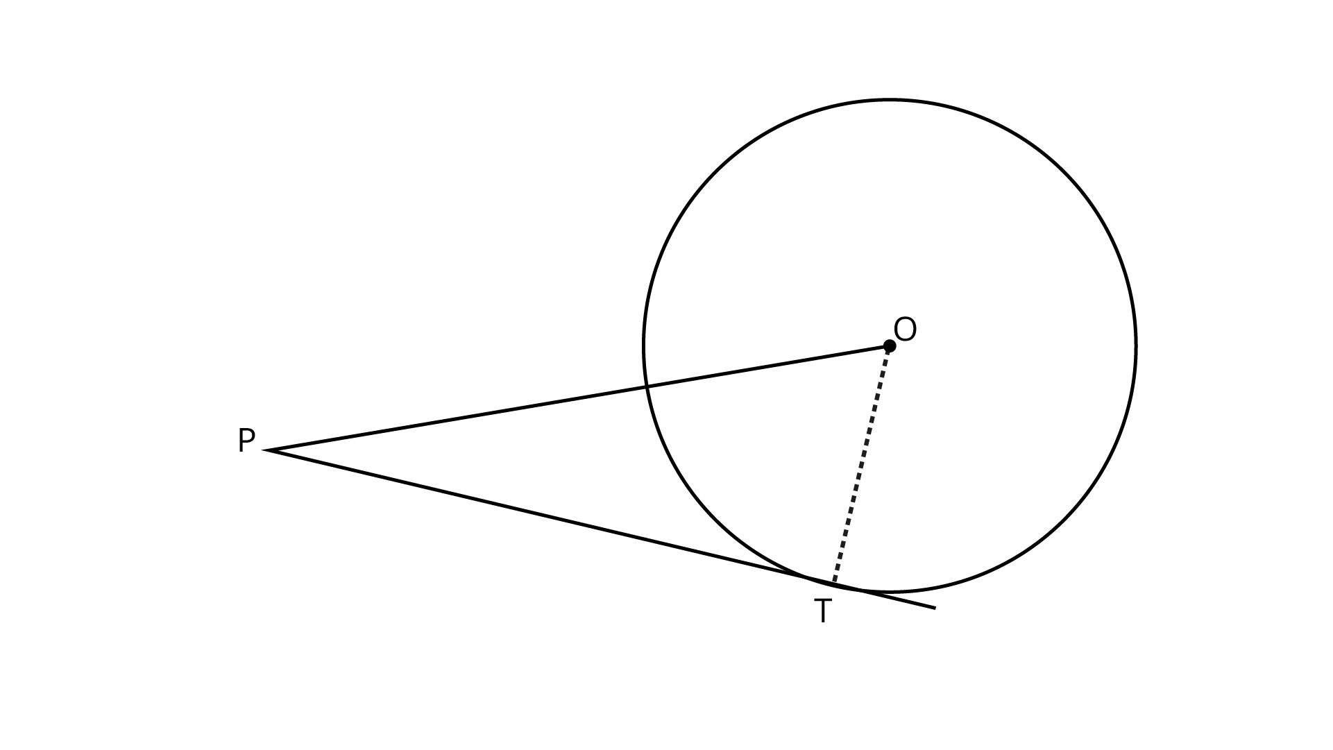 In the above figure $OC$ is joined. The tangent is perpendicular to the radius at the point of contact. Here $OC$ is radius and $CP$ is tangent.