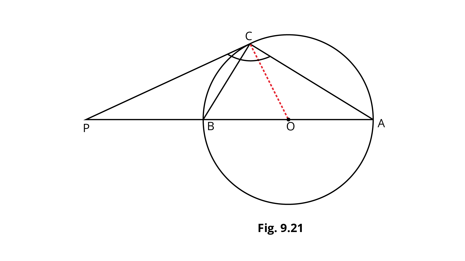 12. In Fig. 9.21. The tangent at a point $C$ of a circle and a diameter $AB$ when extended intersect at $P$. If $\angle PCA = 11{0^o}$, find $\angle CBA$.