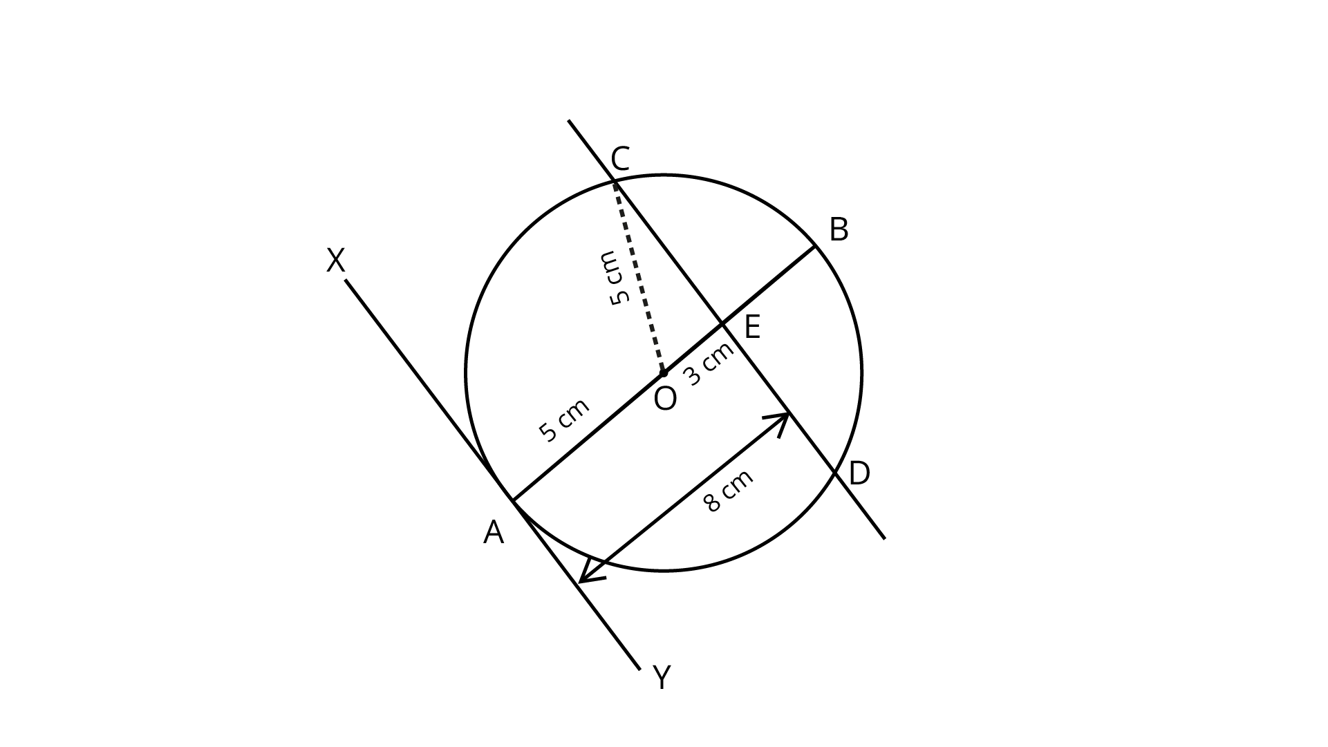 $\therefore$ Length of chord $AC = 2BC = 2 \times 3 = 6cm$