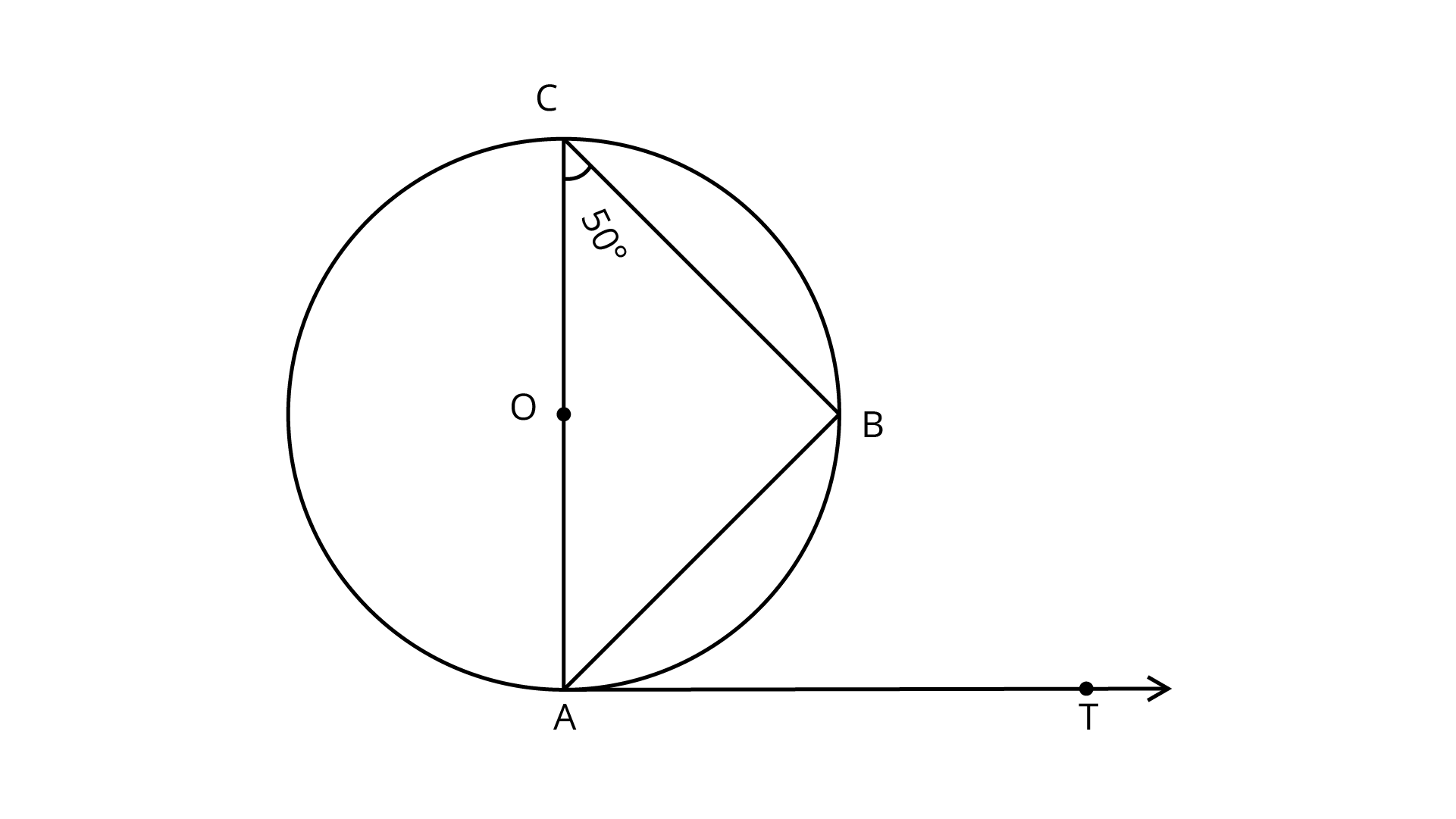 3. In figure, AB is a chord of the circle and AOC is its diameter such that $\angle ACB = 50^\circ$. If AT is the tangent to the circle at the point A, then $\angle BAT$ is equal to
