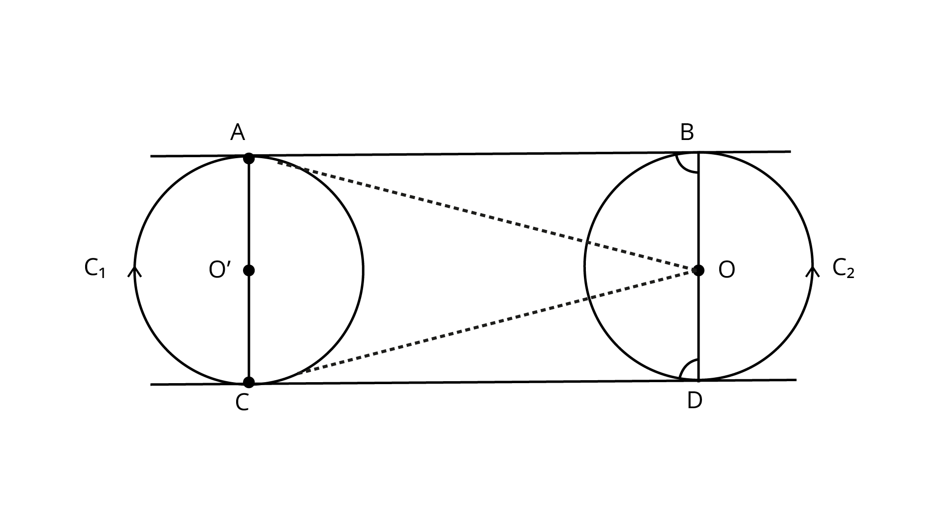 Now, we draw a chord AC of circle ${C_2}$, which touches the circle ${C_1}$ at B.