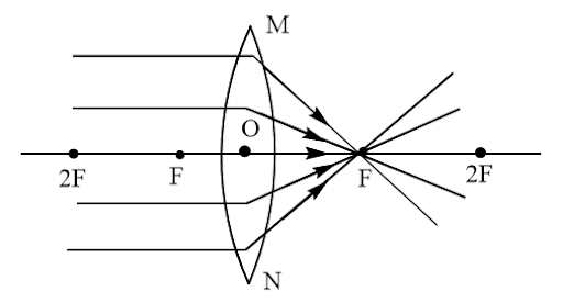 Explanation: When a point source of light is kept at focus of a concave mirror or convex lens, then the emergent light rays are parallel to the principal axis. Hence, they form a parallel beam of light.