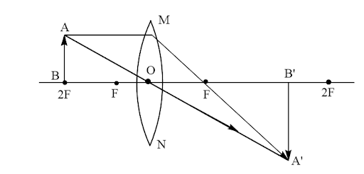 Nature of image: As image is formed on the other side of lens hence it is real image and inverted image.