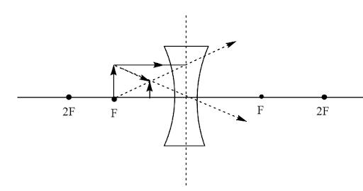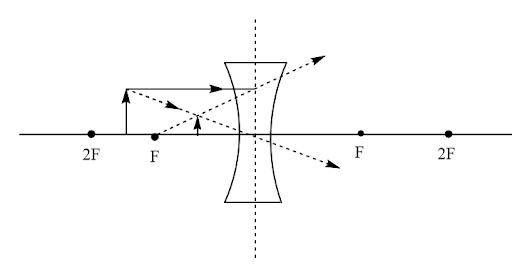 33. Draw ray diagrams showing the image formation by a concave lens when an object is placed