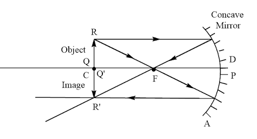 Explanation: A concave mirror produces a real, inverted and magnified image when the actual object is placed between centre of curvature and focus.