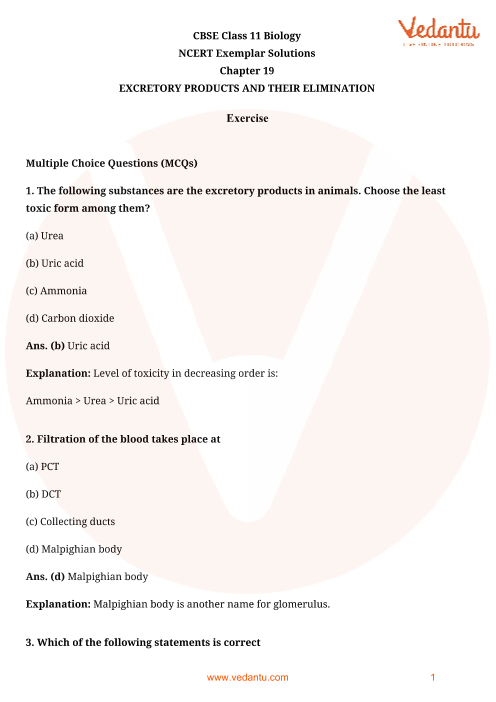 Biology Chapter 19 NCERT Exemplar Book Solution For Class 11