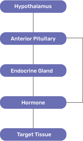 Hypothalamus releases two types of hormones- releasing and inhibiting hormones