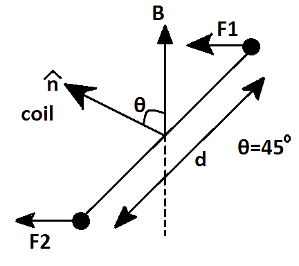 When the axis of rotation of a loop is along$B$, then the angle between $\overrightarrow{B}$ and $\overrightarrow{A}$ is ${{90}^{\circ }}$always. So \[WD\]by loop to rotate i.e., \[WD=MB\text{ }cos~{{90}^{\circ }}\]which is zero.