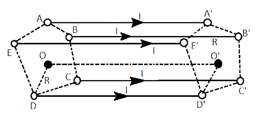 Ans: (a) Figure shows that five conductors$AA'$, \[BB'\], \[CC'\], \[DD'\] and \[EE'\] are along height of regular pentagonal prism\[ABCDE\].