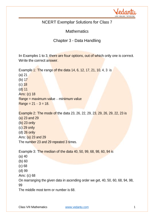 Free PDF download of NCERT Exemplar for Class 7 Maths Chapter - 3 Data Handling solved by expert Maths teachers on Vedantu.com as per NCERT (CBSE) Book guidelines.