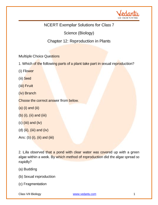 Class 7 Science NCERT Exemplar Solutions Chapter 12 Reproduction in Plants
