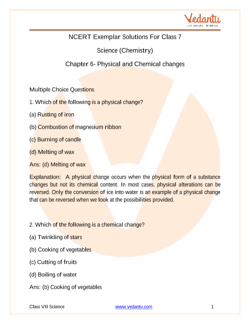 Because the solutions that Vedantu provides for the Exemplar of Class 7, Chapter 6, which is Physical and Chemical changes, are prepared by expert teachers, who have years of experience in teaching science to young students. Therefore, the material that Vedantu provides is student-friendly and can be easily understood by the students of Class 7. Furthermore, it is free of cost and is available for download as well, in the PDF file format, for easy access. Hence, you should download the syllabus for the Exemplar of Class 7, Chapter 6, from Vedantu for free.