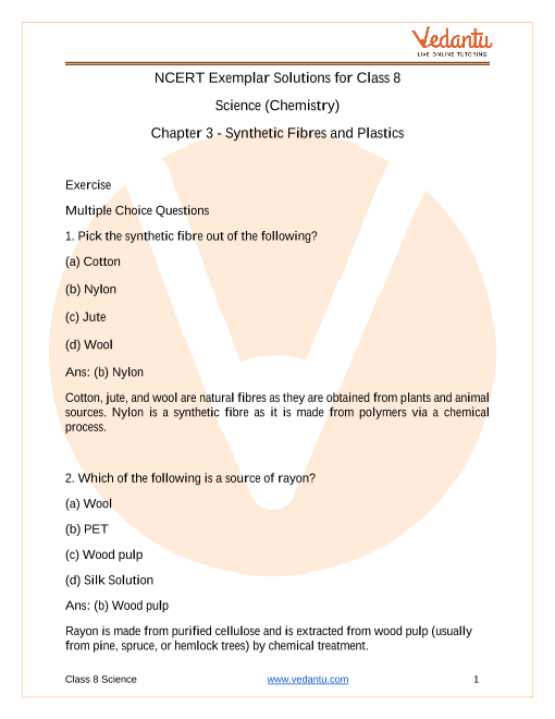 NCERT Exemplar Class 8 Science Solutions Chapter 3 Synthetic Fibres and Plastics - Free PDF download