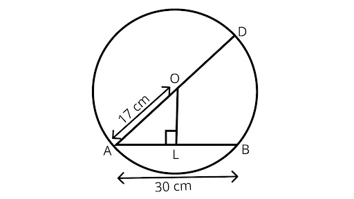 $\therefore AL = LB = \dfrac{1}{2}AB = 15cm$