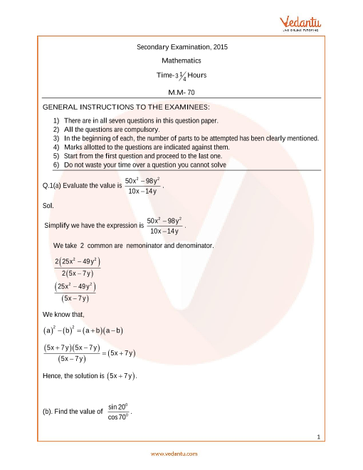 Uttar Pradesh Board Maths Class 10 Question Papers 2015 with Solutions - Free PDF Download.