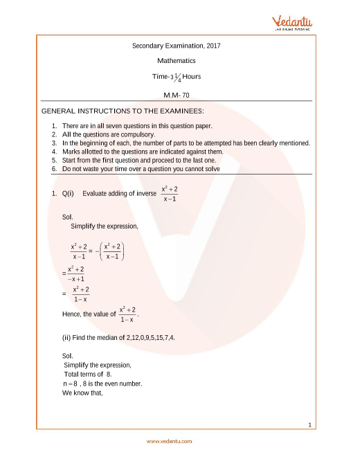 Uttar Pradesh Board Maths Class 10 Question Papers 2017 with Solutions - Free PDF Download.